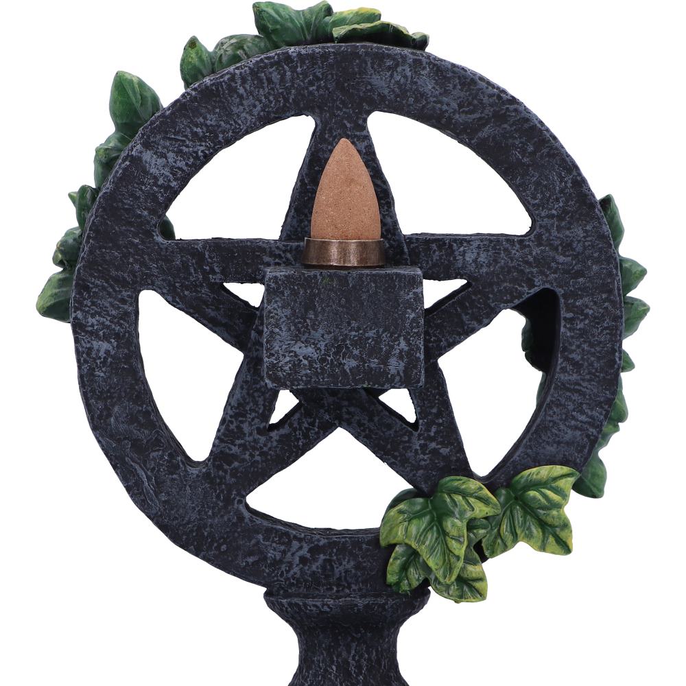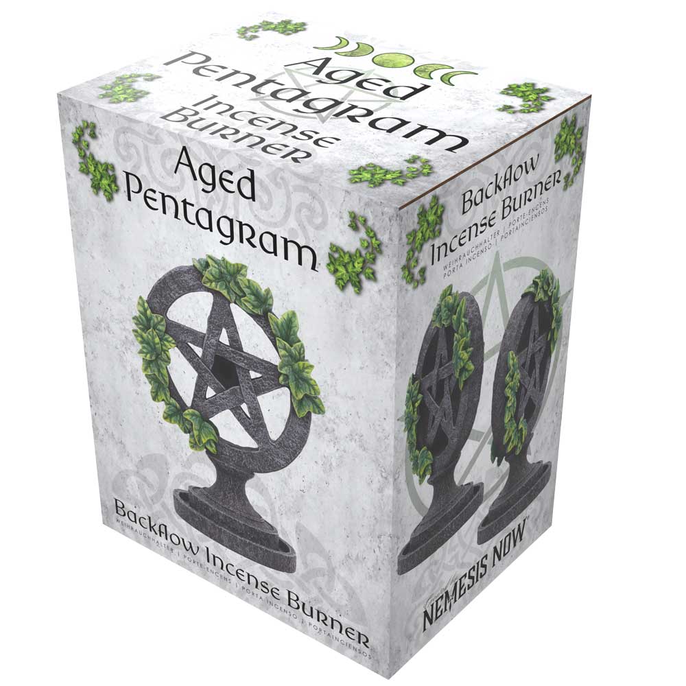 Elevate your incense burning experience with our Aged Pentagram Backflow Incense Burner. Standing at an impressive 19cm tall, this burner features a pentagram symbol resting on a round base adorned with green ivy, adding a touch of nature to your space. The star symbol is complemented by a small square cube at the back, providing a convenient spot to place your favorite backflow incense cones. Crafted with the finest resin and meticulously hand-painted, this burner is a must-have for any wiccan enthusiast looking to enhance their rituals or simply create a calming atmosphere at home.