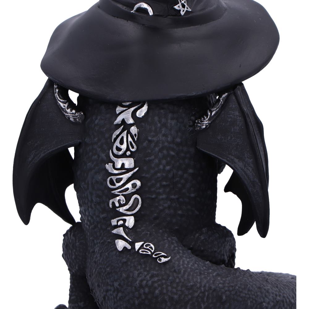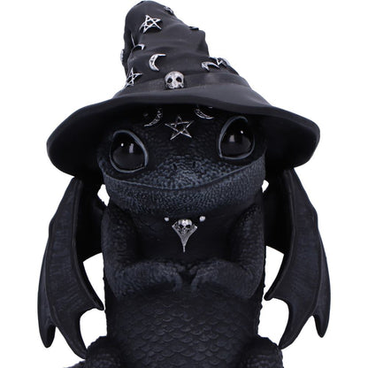 Adorned with a whimsical witch hat featuring silver moons, stars, and a charming skull, this captivating creature is sure to catch the eye. With elegant dragon-like wings and a gracefully curled tail, Azascale embodies the perfect blend of charm and mystique, making it an ideal addition to any whimsical dark decor collection.