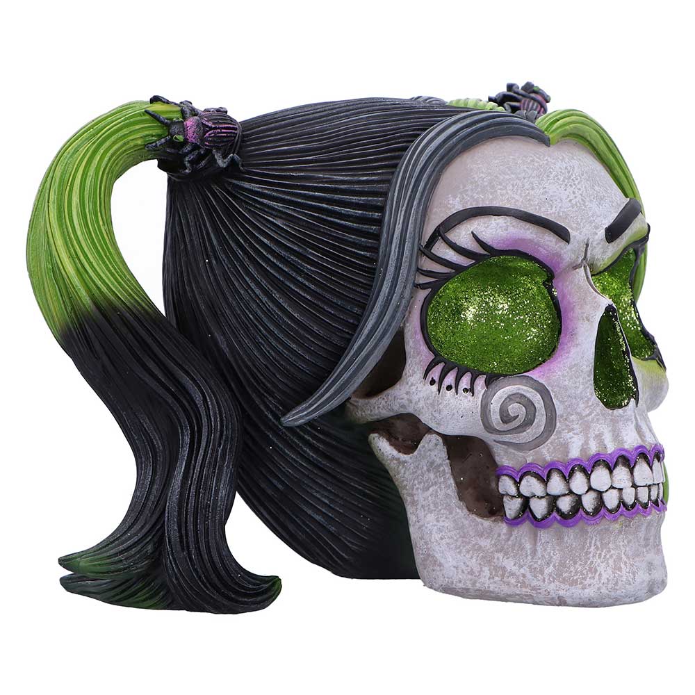 This skull isn’t just décor it’s a work of art. The shimmering eyes, intricate beetles, and rich colour scheme make it a standout piece in any gothic or alternative collection.