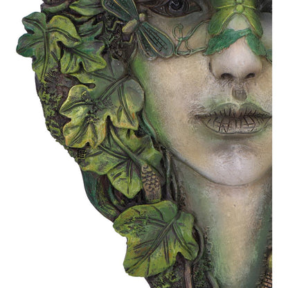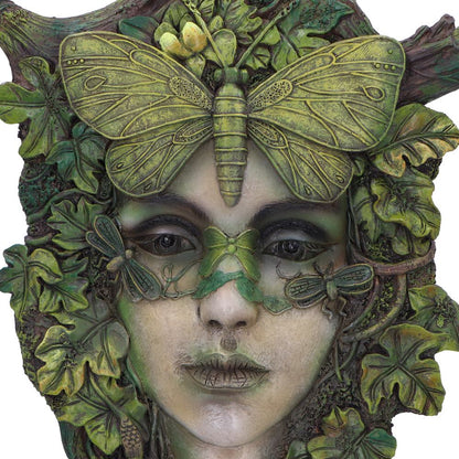 Transform your space with this enchanting green woman adorned with delicate butterfly wings on her head.