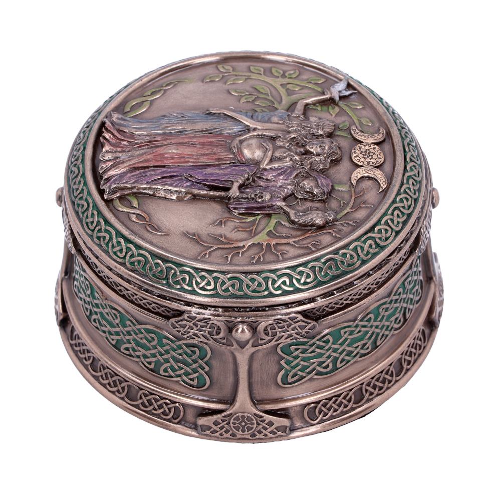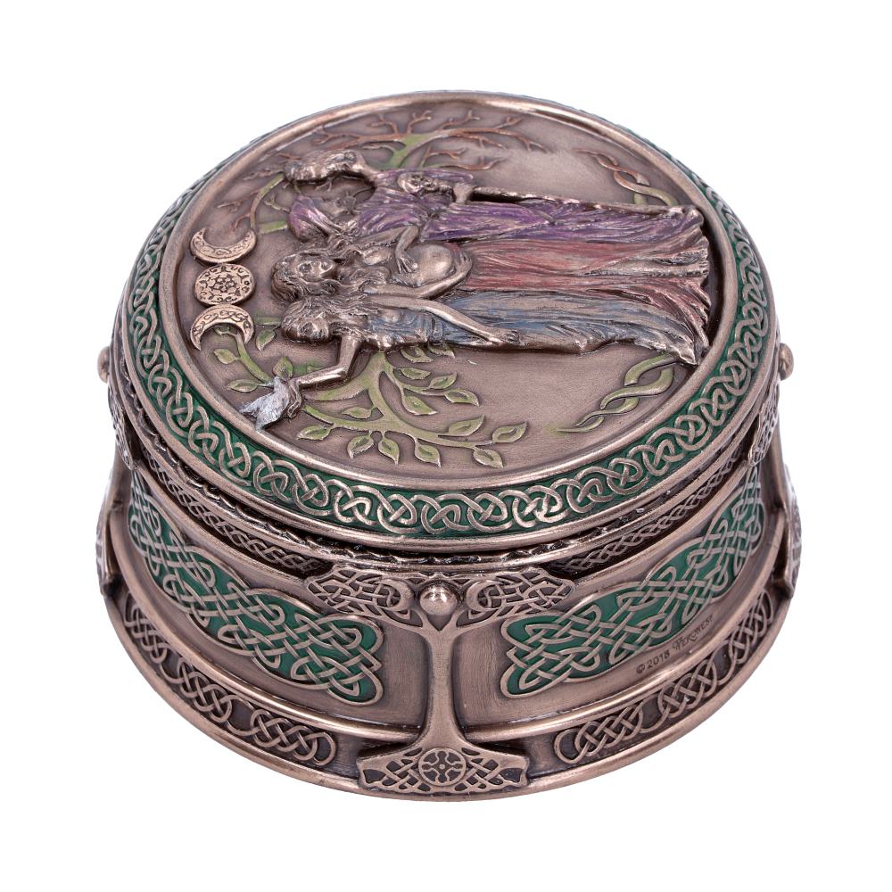 Crafted with high-quality resin and hand-painted with meticulous attention to detail, the Maiden Mother Crone Box is a work of art that would be a perfect addition to any Pagan household.