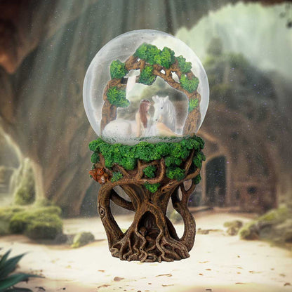 Designed by Nemesis Now and brought to life by artist Anne Stokes, this globe captures a moment of pure love between a woman and unicorn under an oak tree.