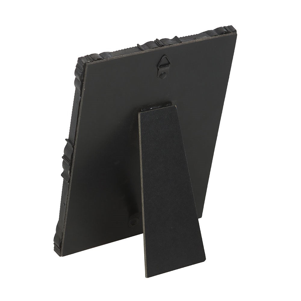 Encased in a sleek, dark frame, this piece exudes an air of gothic elegance, perfect for lovers of unique, moody decor.