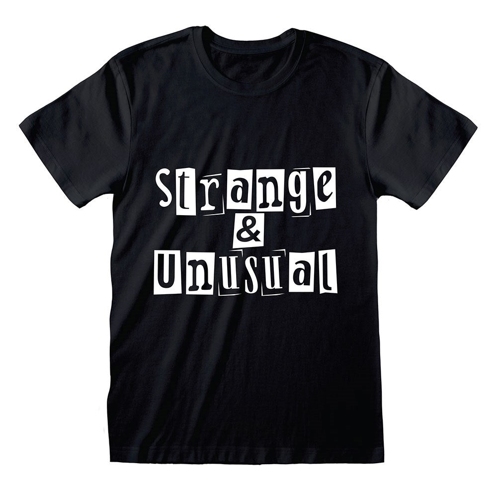 Unafraid to be different? This t-shirt is for you. Emblazoned with the words "Strange & Unusual", it's a declaration of your one-of-a-kind style and personality. Whether you're channeling a spooky aesthetic or just love alternative fashion, this top is a must-have wardrobe essential.