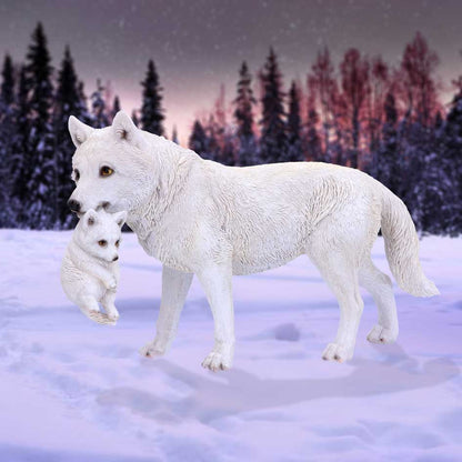 The Winter Bond Wolf Figurine captures the heartwarming bond between a mother and her pup.